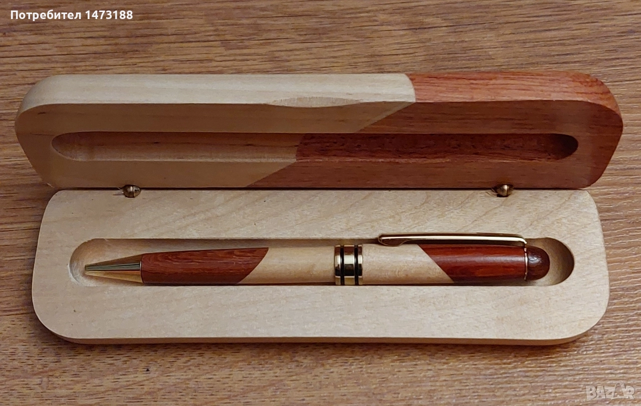 - Дървена кутийка с дървена химикалка (пишеща). Цена 8 Евро.