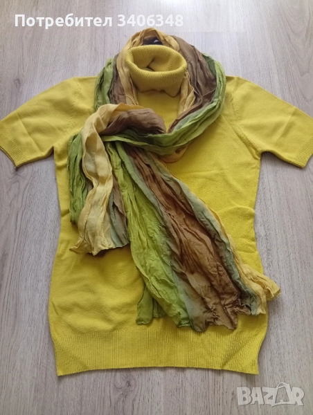 3 блузки плетиво кашмир/ памук/ еластан, размер S/M/L. Много мека и приятна материя. Не са носени. Със съответния шал цената е 14 лева. Без шал по 12 лева.