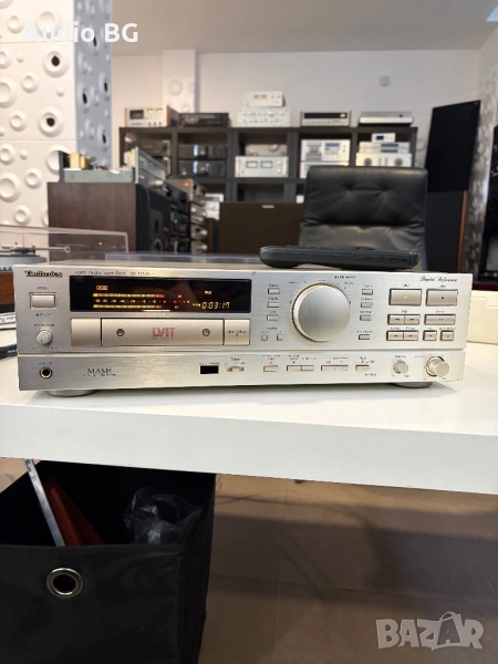 Technics SV-DA10 предлага перфектна комбинация от цифров запис и аналогово качество, с прецизни 16-битови A/D и D/A конвертори и честоти на семплиране 48 / 44.1 / 32 kHz. Със своя широк честотен обхват и изключително ниско изкривяване, този модел осигурява кристално ясен и детайлен звук, който удовлетворява както професионални студиа, така и колекционери на висок клас аудио техника. Топ модел на марката! Перфектна работа, с дистанционно!