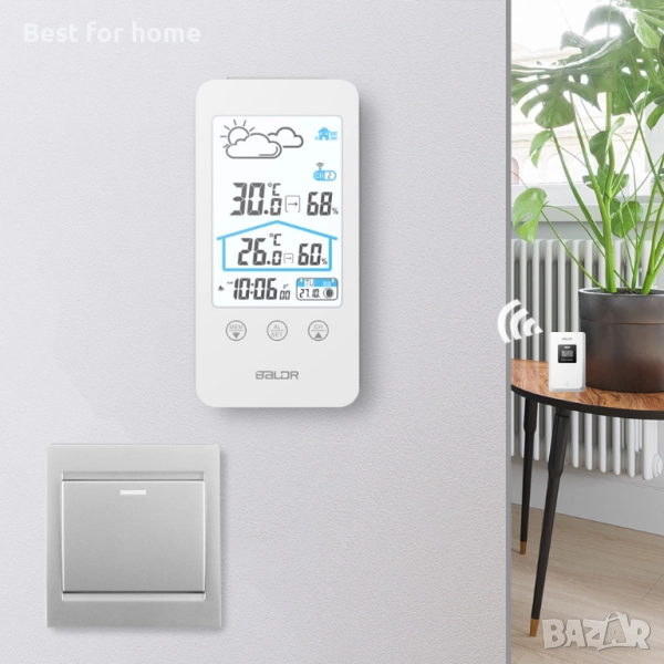 Безжичен термометър и хигрометър BALDR с сензорен екран,