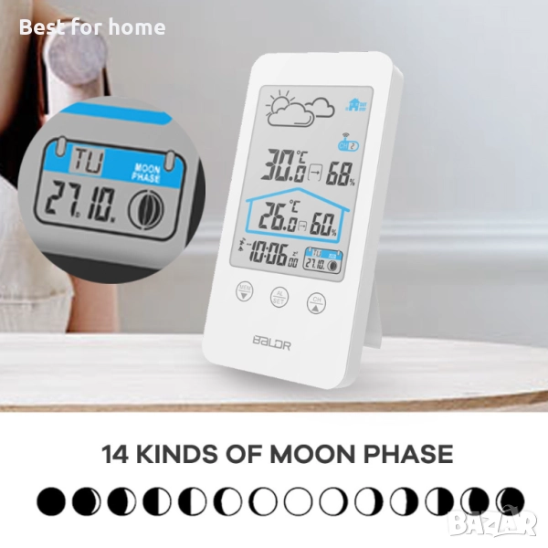 Метеорологична станция за вътрешна и външна употреба, прогноза за времето, функция за фаза на луната
