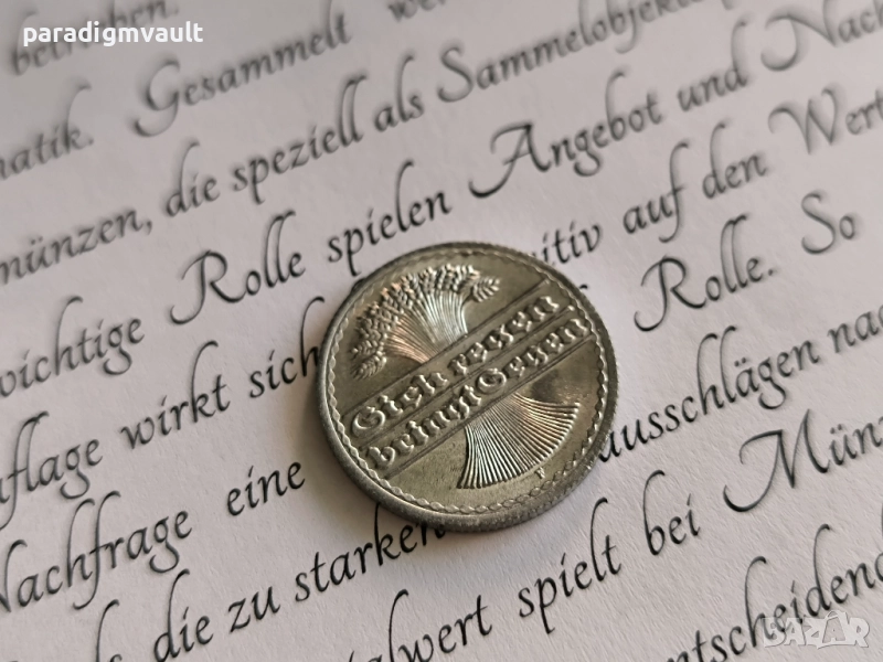 Райх монета - 50 пфенига от 1920г.; серия F