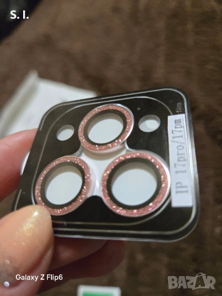 Нов протектор за камера за iPhone 17 pro с брокат. Към него има суха и мокра кърпичка. Много красив аксесоар за Вашият телефон :)