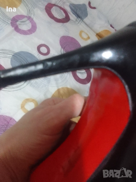 Оригинални обувки с лека забележка на тока, която не се забелязва, когато се обуят-леко е набръчкан лака. Снимала съм забележката. Обувала съм ги няколко пъти и продавам на символична цена, понеже няма да използвам.