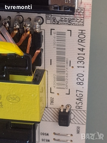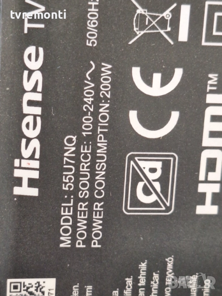Power Supply RSAG7.820.13014/ROH , за 55-инчов телевизор HISENSE Модел 55U7NQ , с дисплей HD550H3U51 Платката е използвана, но гарантирано работеща, демонтирана от телевизор със счупен дисплей. Тествана е от нашия техник.