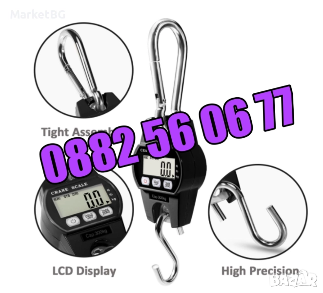 Цифрова висяща кранова везна до 300 кг с LCD дисплей с 3 функции