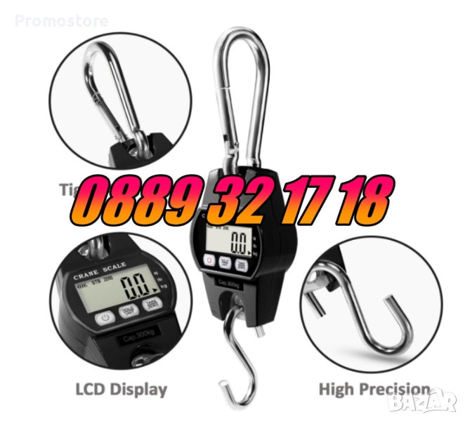 Цифрова висяща кранова везна до 300 кг с LCD дисплей с 3 функции