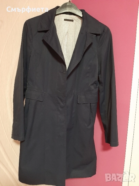 Тъмносин дамски тренч Sisley, размер 36 втален модел. Стои много елегантно, не се мачка.