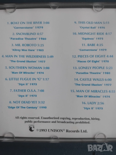 Styx - Best vol. 1 - матричен диск Unison / Унисон, снимка 1 - CD дискове - 52179537 Styx - Best vol. 1 - матричен диск Unison / Унисон, снимка 2 - CD дискове - 52179537 1/2