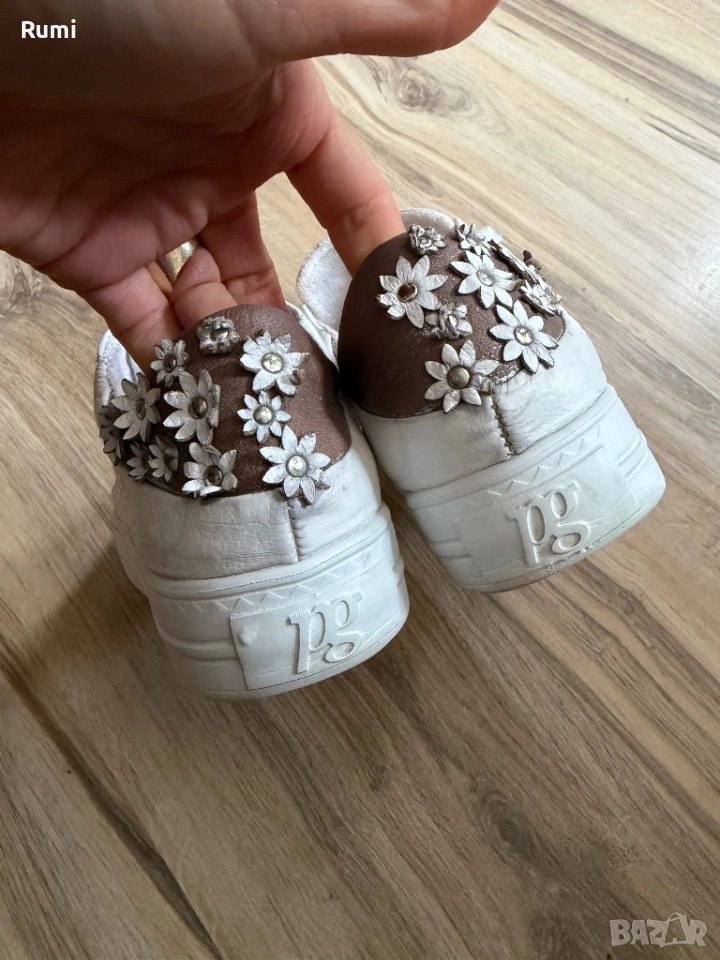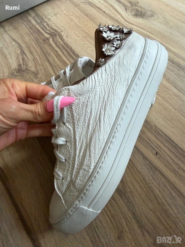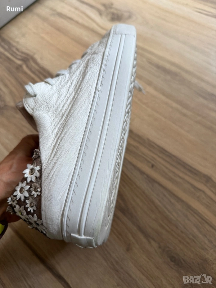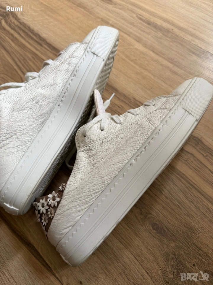 Уникални шикозни обувки идеални за вашия спортен и елегантен тоалет . Уникален лек шикозен страхотен модел за ценители на качеството . Като нови обувани броени пъти бутиков нов скъп модел . От качествена естествена кожа отвън и отвътре като размер са 38,5 н със стелка 24 см ! Чисто бели уникални !