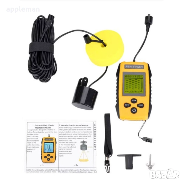 Преносим сонар за риба с дисплей и сонарен сензор – до 100 метра