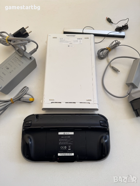 Комплекта включва конзола,контролер-таблет,оригинално захранване за конзолата,оригинално захранване за контролера-таблета,сензор бар,HDMI кабел,игра на диск New Super Mario Bros U + New Super Luigi.