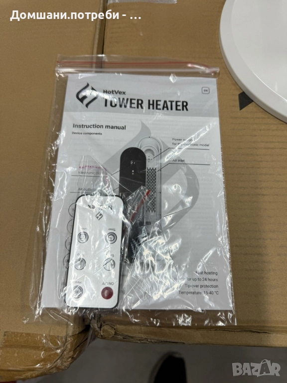 HotVex Tower Heater – мощен и стилен отоплител за всеки дом или офис 🔥 HotVex Tower Heater е вертикален подов отоплител, създаден за комфорт през студените дни. Благодарение на компактния си кула-дизайн, той заема минимално място и се вписва идеално както в дома, така и в офиса. 🔹 Мощност 2000W – достатъчна, за да отопли помещение до 25–30 кв. м. 🔹 Регулируема температура от 15°C до 40°C – настрой топлината според личните си предпочитания. 🔹 Сензорно управление – лесно и интуитивно. Вградена е заключваща функция за безопасност на деца, която предотвратява случайна промяна на настройките. 🔹 Дистанционно управление – за пълен комфорт, без да ставаш от мястото си. 🔹 Функция за осцилация (въртене) – разпределя топлия въздух равномерно из помещението. 🔹 Защита от прегряване – автоматично изключване при нужда за допълнителна сигурност. 🔹 Лек и преносим – с тегло само 1.9 кг и размери 230×230×635 мм, лесно можеш да го преместиш където ти е нужно. Технически характеристики: • Мощност: 2000 W • Напрежение: 220–240 V • Размери: 230 × 230 × 635 мм • Регулиране на температурата: 15–40°C • Таймер: до 24 часа • Управление: електронно, сензорно • Дистанционно управление: включено • Тегло: 1.9 кг