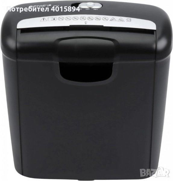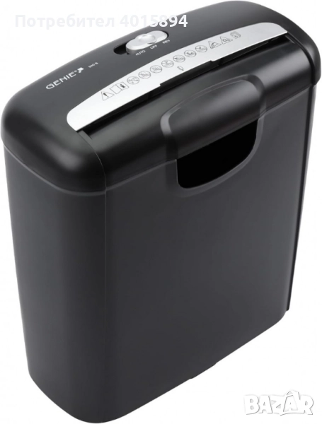 Професионален шредер за документи Genie 240S за унищожаване на документи, хартия и кредитни карти с 10-литров контейнерШредерът ви позволява да нарежете до 6 листа хартия на ленти с ширина 7 мм едновременно. Мощният шредер лесно раздробява кредитни и пластмасови карти. Благодарение на функцията старт/стоп, може да се управлява и с една ръка. Главният превключвател на шредера ви позволява да избирате между режими Автоматичен, Изключен и Обратен. Контейнерът за събиране на шредера има изключително голям капацитет от 10 литра хартия и отвор, за да се вижда нивото на пълнене по всяко време. Тип рязане: Рязане на ленти; Капацитет: 10 литра; Цвят: Черен; Стандартен капацитет на листове: 6; Източник на захранване: Електрически с кабел; Размери на продукта: 29,2 Д x 32,6 Ш x 14,2 В сантиметра; Вид материал: Пластмаса метал; Гаранция: 12 месеца.