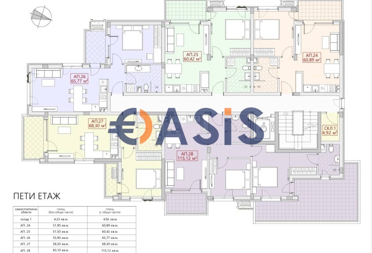 Обща площ: 115.12 кв. м.
