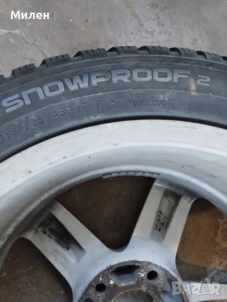 Продавам почти нови зимни гуми Nokian 225/45 r17 DOT 2023 на алуминиеви джанти за БМВ е90. При интерес може да закупите само гумите на цена от 260 euro.