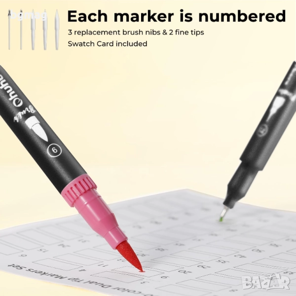 - За рисуване, калиграфия и много повече: Комплектът маркери със 100 цвята от Ohuhu е подходящ за много приложения. Перфектен за рисунки, илюстрации, калиграфия, правене на картички, щамповане, книжки за оцветяване и всичко друго, което можете да си представите. Без значение какви са вашите нужди, тези маркери са създадени за това.