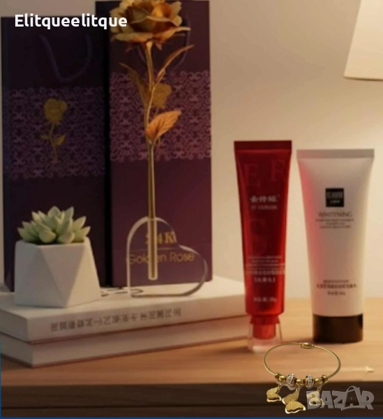🌹 ИЗГОДНА ОФЕРТА – 4 ТОП ПРОДУКТА В 1! 🌹 Перфектният подарък за твоята половинка 💖 ✨ BB крем за лице – 24 часа съвършено покритие, без тежест и без пори! ✨ Хидратиращ измиващ гел – нежна грижа и свежест всеки ден. ✨ Златна роза с 24К покритие – символ на любов и стил. ✨ Елегантна гривна с пеперуди и цирконии – блясък за всяка дама.