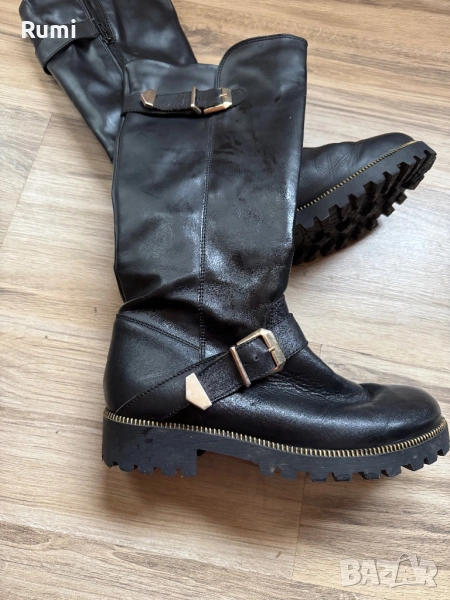 Уникални оригинални високи дамски ботуши от естествена кожа уникален модел който стои страхотно пи крака . Носени съвсем малко уникално удобни леки с цип за лесно обуване . Скъпи като модел идеални точно за сезона . Като размер са 38 н със стелка 24 см !