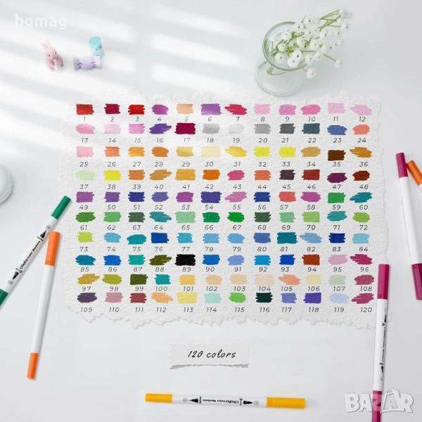 ✎ 120 ЯРКИ ЦВЯТА С НОМЕРА ЗА БЪРЗО ТЪРСЕНЕ НА ЦВЕТОВЕ: Този комплект маркери с двоен накрайник съдържа 120 живи цвята, всеки номериран, за да улесни намирането на любимите ви цветове. Освен това има празна DIY карта с цветове, която ви позволява да организирате цветовете според вашите предпочитания. (Не забравяйте да затворите маркерите след употреба, за да предотвратите изсъхването им.)