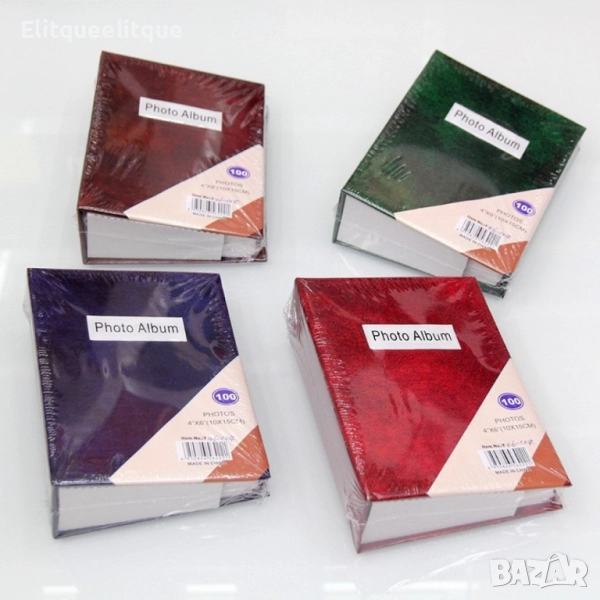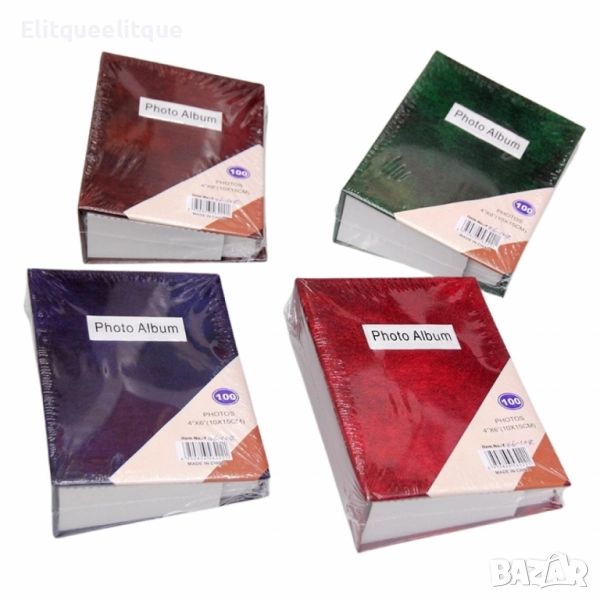 Капацитет: 100 снимки (10x15 см); Тип страници: Прозрачни джобове от полипропилен, устойчиви на пръстови отпечатъци и избледняване; Материал на корицата: Твърд картон с текстурирано или гланцово покритие (в зависимост от модела); Тип подвързване: Книжно или термолепено, за стабилност и лесно разлистване; Цветове: Тъмно кафяв, тъмно зелен, тъмно лилав, тъмно червен;