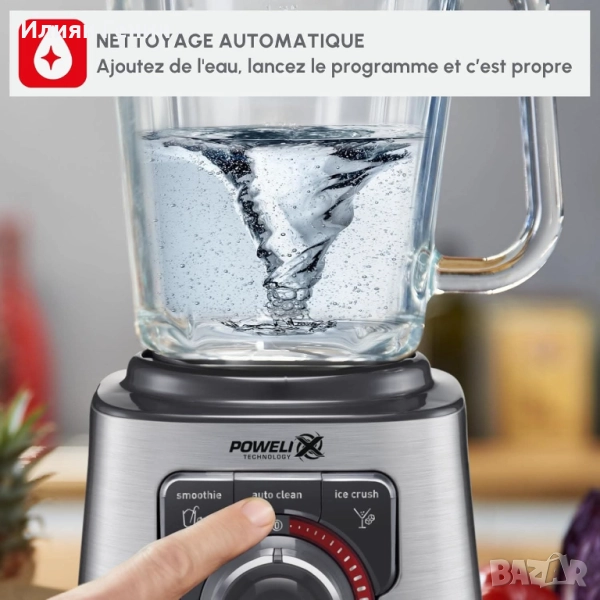 3 интелигентни предварително зададени програми и селектор на скоростта със задно осветяване: 3 предварително зададени програми (Smoothie, Ice Crush и Auto Clean) за създаване на разнообразие от препарати и селектор на скорост със задно осветяване с импулсна функция