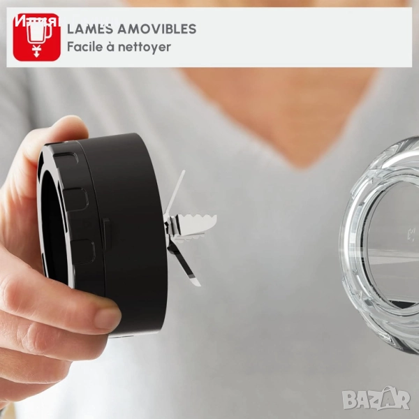 Подходящо за съдомиялна машина: Разглобяемият съд за смесване и остриетата са подходящи за съдомиялна машина за бързо и лесно почистване. (Всички части с изключение на основата на двигателя).