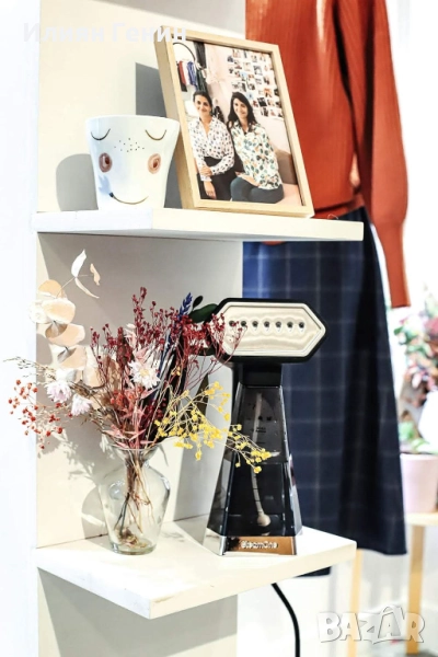 Различни функции за комфорт улесняват употребата: ръчно задействано заключване осигурява непрекъсната пара, така че по-дебели тъкани и по-големи повърхности могат да бъдат изгладени. Резервоарът за вода от 300 мл се пълни просто през голям отвор, така че може да се глади непрекъснато до 20 минути. Чувствителните дрехи се изглаждат нежно благодарение на контрола на мощността на парата. Идеален за пътуване: подвижният резервоар за вода може да бъде заменен с конвенционална бутилка за вода от търговската мрежа. Включена е и кука за дрехи с вендуза, която може да се закрепи елегантно и дискретно към гладки повърхности. По този начин дрехите могат да се изправят директно на закачалката. А когато S-Nomad не се използва, можете да го съхранявате заедно с аксесоарите в практична сатенена чанта.