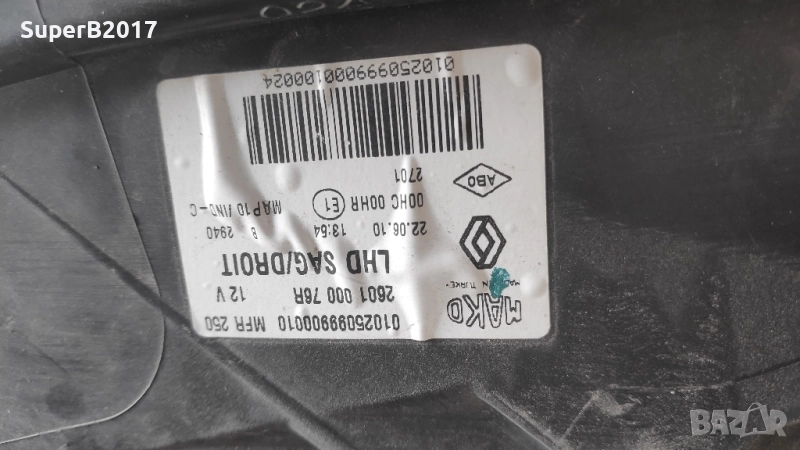 Продавам - оригинални ляв и десен фар за Рено Флуенс (Renault Fluence) 2010-2016 г. със забележки. Левия фар е със здраво стъкло, рефлектори и инсталация, има две счупени крачета и от долна страна до единия водач е пукнат корпуса. Десния фар е със здраво стъкло, рефлектори и инсталация, десния фар е със едно счупено краче,а под едното краче е пукнат корпуса. Всичко се вижда на снимките, забележките са поправими, предлагат се на пазара и рем. к-т крачета. Оригиналния номер на левия е 260600078R, а на десния е 260100076R. Цена за брой - 100 лв.