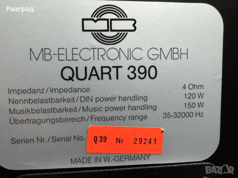 Тонколони MB-ELECTRONIC QUART 390 → Обява 52183584