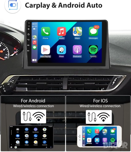 4GB+64GB цена 429.90лв, 8-ядрен процесор, Android Auto, CarPlay, Wi-Fi, RDS, AHD камера
