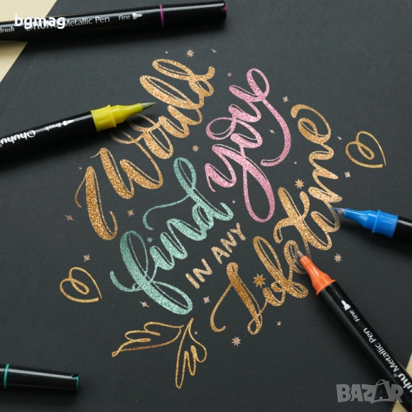 ✎Ohuhu Metallic Marker Pens маркери с два писеца тип четка и тънък писец, 24 металикови цвята