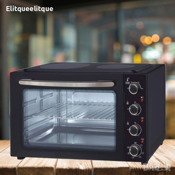 Мощност: 4300 W; Обем на фурната: 45 литра; Температурен диапазон: 90°С до 230°С; Брой котлони: 2 инфрачервени (1500 W и 1000 W); Функции: Конвекция, термостат, вътрешно осветление, защита от прегряване, вентилатор; Материали: Метал, пластмаса, стъкло; Тип контрол: Механичен; Захранване: 220-240V~, 50-60Hz; Аксесоари: Емайлирана тава за печене, хромирана решетка, дръжка за тавата, тава за трохи; Гаранция: 24 месеца.