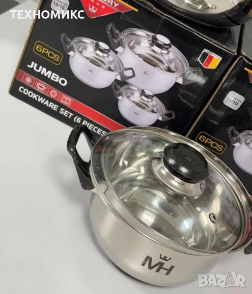 6 части общо (тенджера + капак за всеки размер) – не търсиш „къде ми е капакът“, просто готвиш.