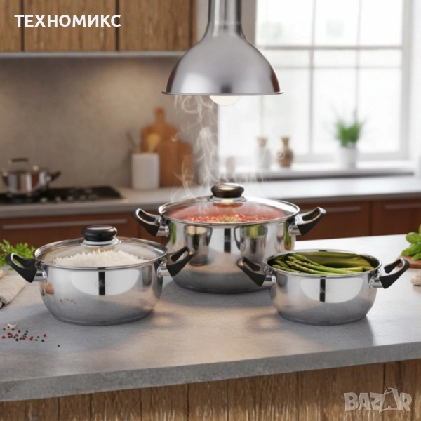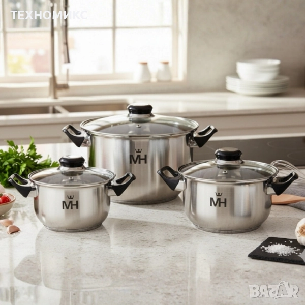 комплект тенджери решава хаоса с размерите и капацитета – без да препълваш кухнята. Този 6-частов сет ти дава три най-използвани размера с капаци, така че винаги да имаш точния съд за супа, гарнитура или основно. Резултатът? По-малко губене на време, по-малко миене и по-подредена кухня – всеки ден.