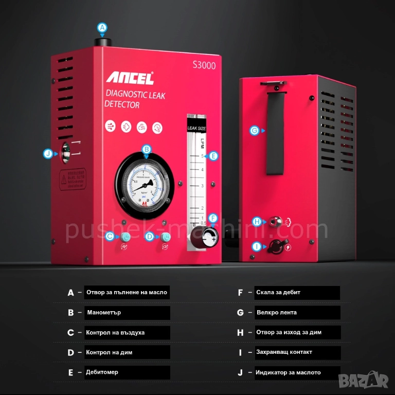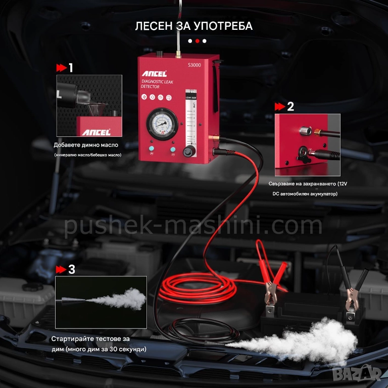 Автомобилен детектор за откриване на течове с дим, 12V.
