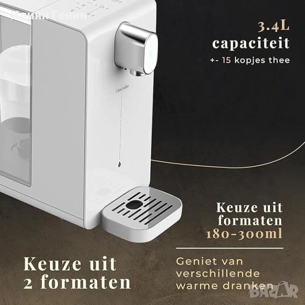 Диспенсър за топла вода Glacielle - Луксозна кана за бързо приготвяне - 3.4 л - Включва филтър за вода - Кран за топла вода - Бял - 100.00лв.