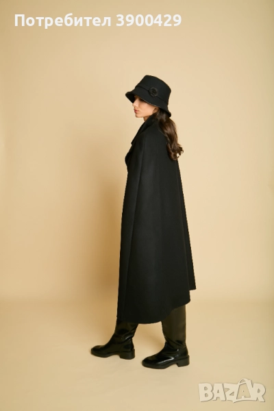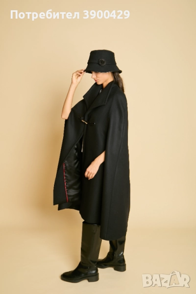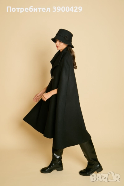 Елегантна вълнена пелерина с красив акцент-кожена закопчалка с метално копче.