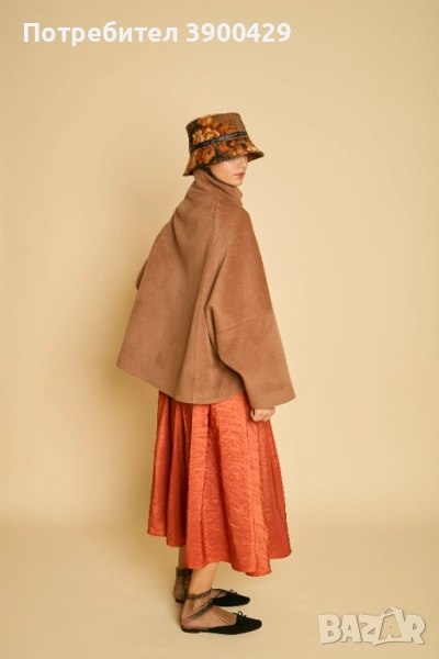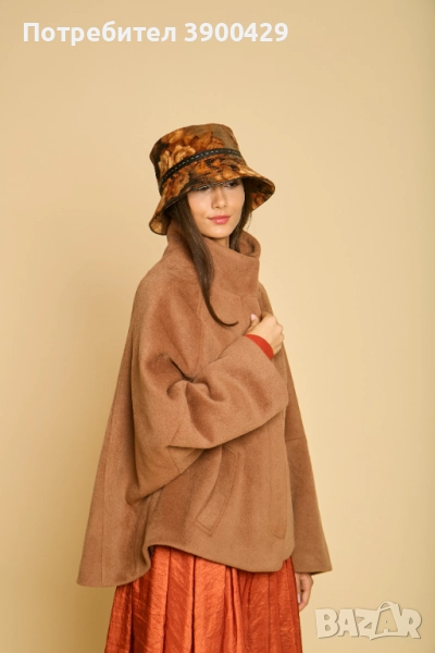 Красиво палто от вълнен кашмир с джобове с филетки и висока яка за студените дни.