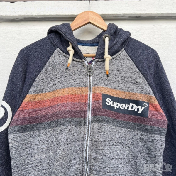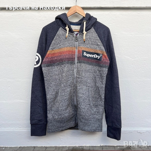 Мъжки суичър Superdry Pacific Surf – размер L, сив с тъмносини ръкави, с цип