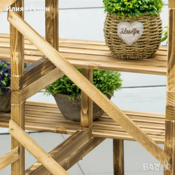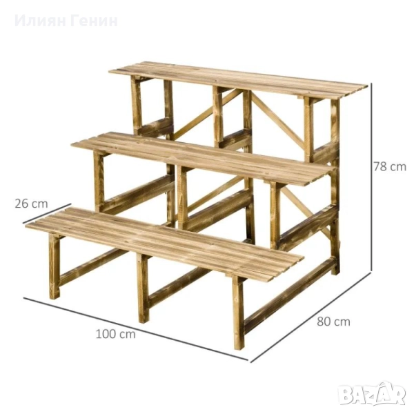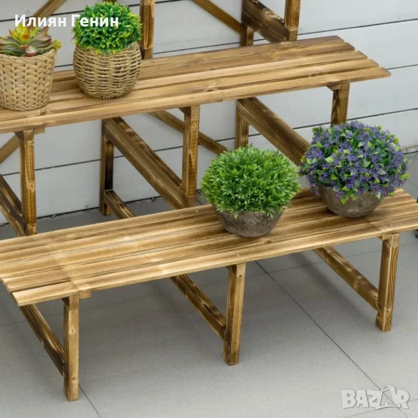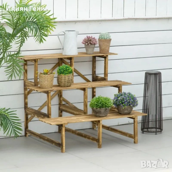 Стълба за растения Outsunny, стълба за цветя, рафт за цветя, стойка за цветя, 3 нива, ела, 100 x 80 x 78 см - 100.00лв.