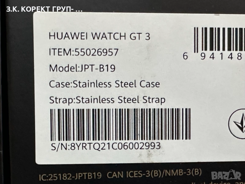 Продавам смарт часовник Huawei Watch GT3, 46 mm с кутия и зарядно към него.