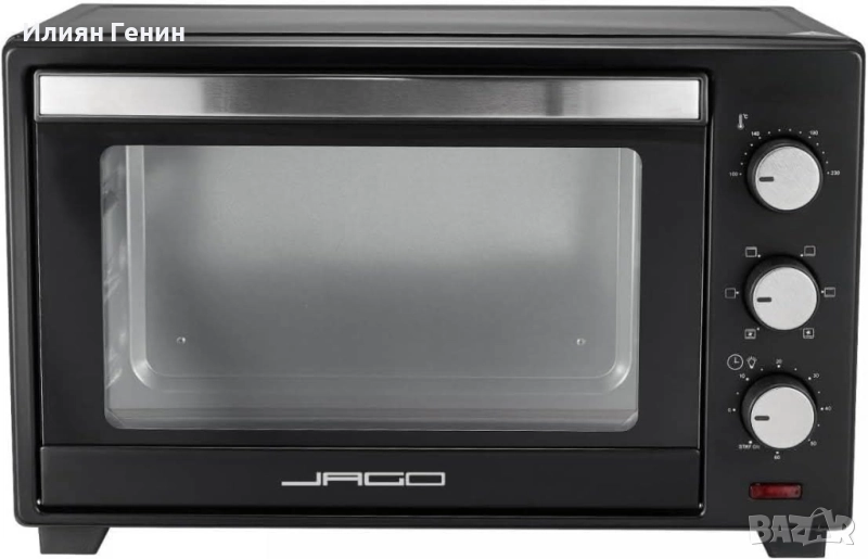 Мини фурна Jago® с рециркулация, вътрешно осветление, електрическа, 30 л, 5 режима на готвене, 1600 W, таймер, 100-230°, двойна стъклена врата, черна - 150.00лв.