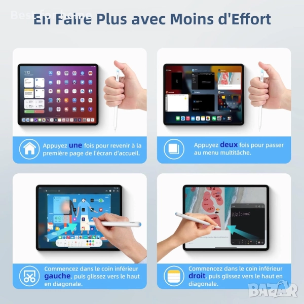 【Bluetooth и бързи клавиши, вашата многофункционална помощ】След като се свържете с Bluetooth, получавате 2 невероятни функции: ① Процентно ниво на батерията на писалката на екрана на iPad. ② 2 бързи клавиша от горния бутон: едно щракване ще ви върне към работния плот, а двойно щракване ще ви върне към менюто за многозадачност. Това е добър подарък за художници, дизайнери, писатели и всеки, който иска да направи своя iPad да работи по-ефективно.