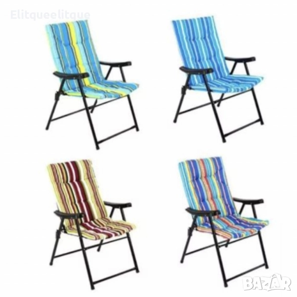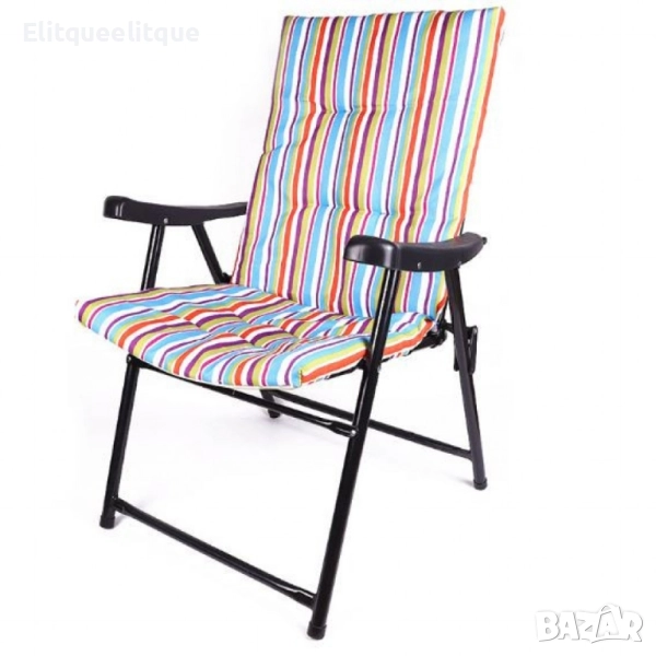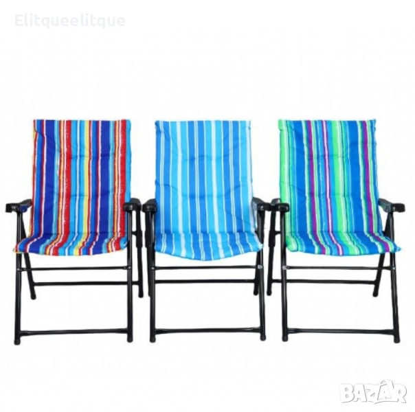 Размери: 90 x 58 x 55 см Материал на конструкцията: Желязна тръба Материал на седалката: Висококачествена възглавница и устойчива на замърсяване материя Максимално тегло на потребителя: до 265 lbs (около 120 кг) Тип: Сгъваем стол за къмпинг и отдих Цвят: Многоцветен (Изпраща се изпраща според наличността в склада)