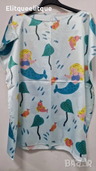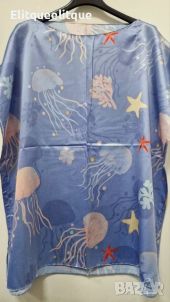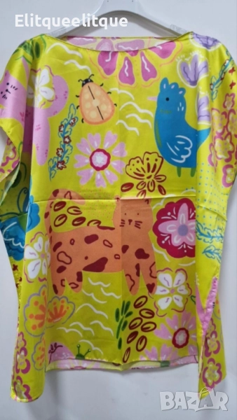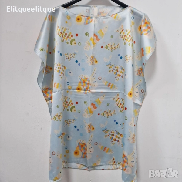 Размер: 70 х 70 см; Материя: 100% естествена коприна; Кройка: свободна, универсален размер; Поддръжка: ръчно пране с хладка вода или химическо чистене; Разцветки: Бяла на котенца; Жълта на картинки; На цветя; Бежова на далматинци; Имитираща бои; Имитираща детска рисунка; Оранжева на далматинци; Светло синя на рибки; Светло синя на русалки; Синя на медузи.