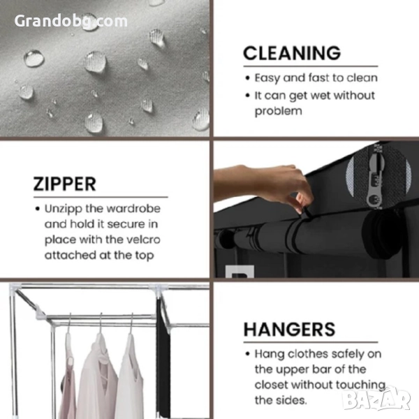 Този преносим гардероб е чудесно устройство за съхранение, за да поддържате спалнята си чиста и подредена. Имате нужда от допълнително място за дрехите си? Този двоен гардероб с покривало от нетъкан плат е абсолютно идеално решение за съхранение на дрехи, обувки, книги, играчки и други!