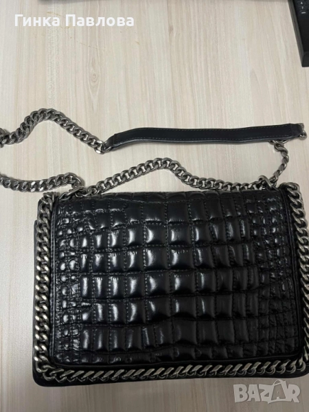 Ефектна чанта през рамо обкантена с дебел синджир,с преграда,от едната страна с голям джоб
