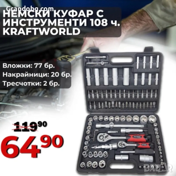 ▪️ 17 броя вложки 1/2“ къси: 10мм; 11мм; 12мм; 13мм; 14мм; 15мм; 16мм; 17мм; 18мм; 19мм; 20мм; 21мм; 22мм; 24мм; 27мм; 30мм; 32мм