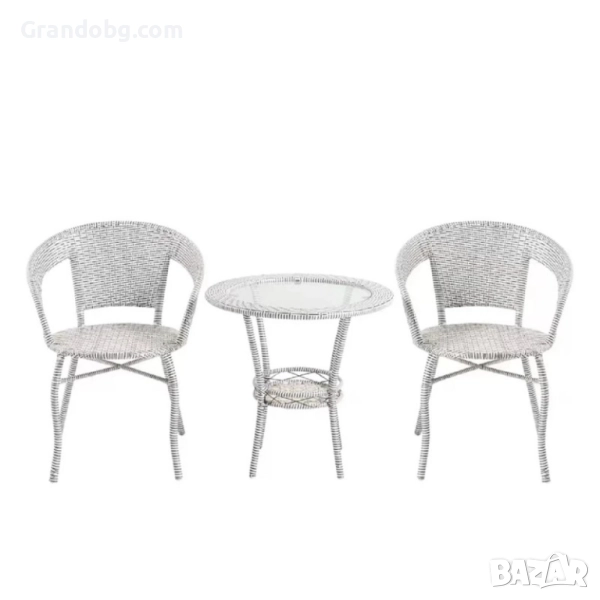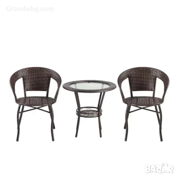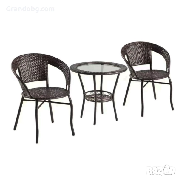 Лесен за поддръжка, той съчетава простотата на минималистичен дизайн, издръжливост и функционалност, за да се избегне подмяната му възможно най-дълго поради променящите се тенденции в дизайна. Комплектът се състои от ратанова кръгла маса с поставка отдолу, покрита със стъклен плот, и 2 ратанови стола, които предлагат необходимия комфорт, за да се чувствате спокойно във всеки момент, прекаран на открито.